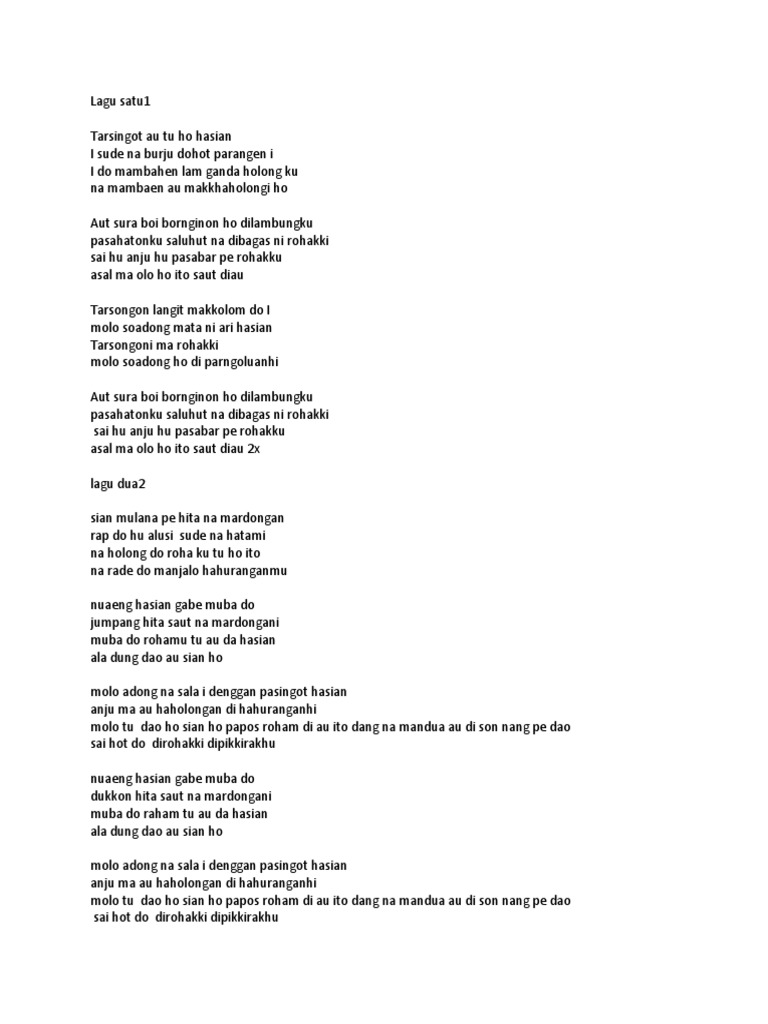 Apr 29, 2019 · molo adong pambahenanki na so denggan. More images for lirik lagu molo adong nasala i denggan pasingot hasian » F# bm denggan pasingot hasian. Agustus 08, 2021 posting komentar umbahen sai muruk ho tu au ito. Feb 21, 2020 · molo tung adong na sala nahubaen g c d denggan pasingot hasian.
