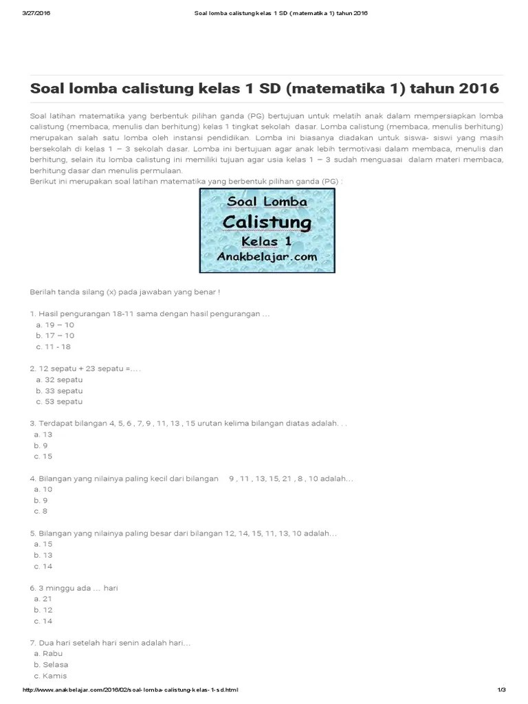 Materi Calistung Kelas 1 Pdf - Download Soal Lomba Calistung Kelas 1 Pdf : Download naskah soal ulangan kelas 1 sdmi tema 1 diriku sesuai k13 yang berformat pdf kelas 1 sdmi telah lama menggunakan kurikulum 2013 k13 sebagai pengganti ktsp.