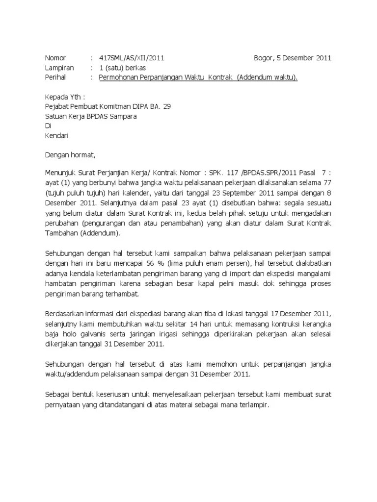 Contoh Surat Permohonan Addendum Perpanjangan Waktu Kontrak Kerja : Contoh Surat Permohonan Addendum Kontrak / Surat permohonan perubahan kontrak sesuai format format pada .